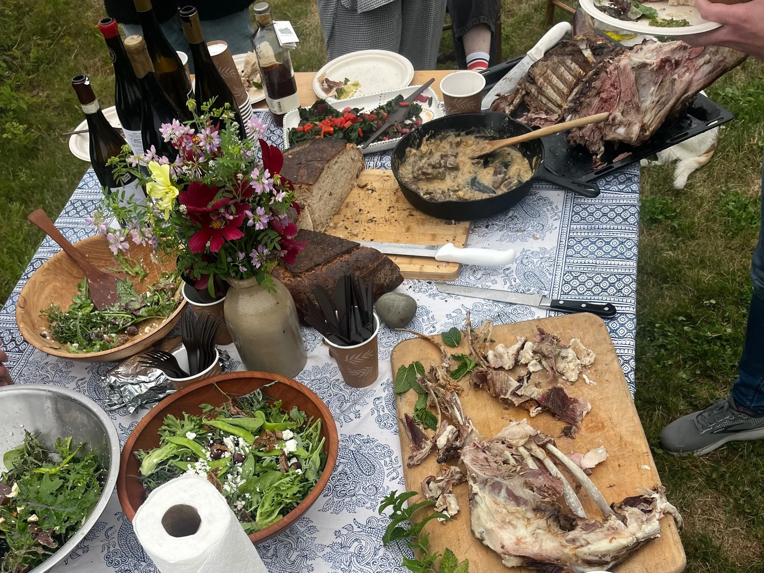 Aidan learned the technique of lamb asado in Chile and has made it a staple of island summers for the past 4 years. We start our fires early in the day and allow the meat to cook for hours. Our fire roasted lamb will yield roughly 20-30 lbs of meat, which pairs amazingly with our chimichurri sauce, a slice of toasted bread and maybe even some wine. Simple is good.